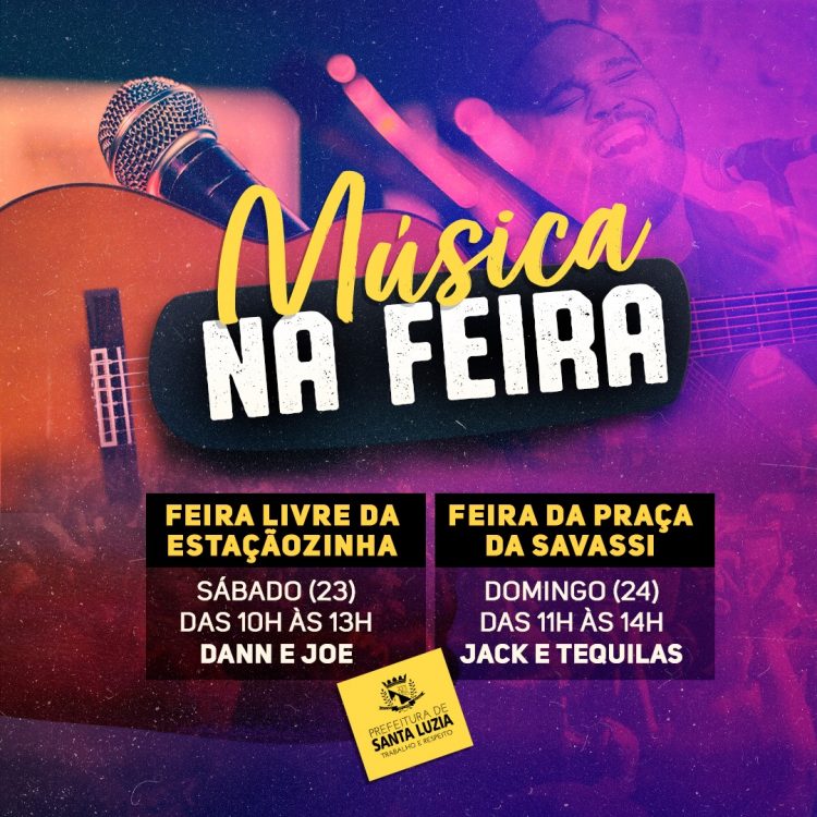 Muita música e animação nas feiras livres da cidade neste final de semana. No sábado (23), a Feira da Estaçãozinha terá como atração a apresentação dos músicos Dann e Joe, das 10h às 13h. Já no domingo (24) será a banda Jack e Tequilas que animará a Feira da Praça da Savassi, no bairro Palmital, das 11h às 14h.