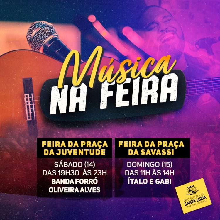 Muita alegria e animação nas feiras livres da cidade neste final de semana. No sábado (14), a Feira da Praça da Juventude recebe a banda Forró Oliveira Alves, das 19h30 às 23h. No domingo (15), na Feira da Praça da Savassi, no bairro Palmital, será a dupla Ítalo e Gabi que animará o espaço, das 11h às 14h.