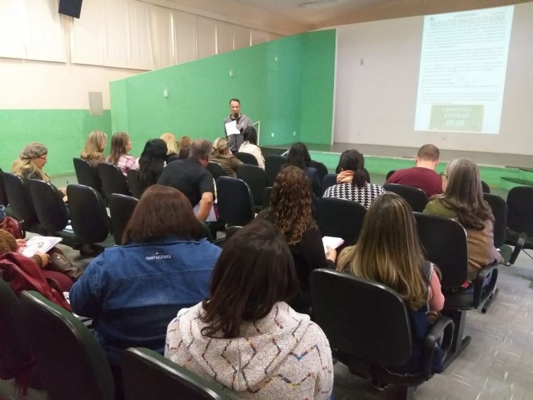 Na manhã desta segunda-feira (8), gestores de escolas municipais e estaduais se reuniram com o Secretário Municipal de Educação, Ermelindo Martins Caetano e representantes da Secretaria de Estado de Educação, as inspetoras Fabiana das Graças Gonçalves e Aparecida Cristina Ferreira, para discutirem sobre o cadastramento escolar, que termina na próxima sexta-feira (12). O objetivo foi mobilizar os gestores para que o cadastramento atinja o maior número de pessoas, entre crianças, jovens e adultos. A reunião aconteceu no auditório do Centro Administrativo.