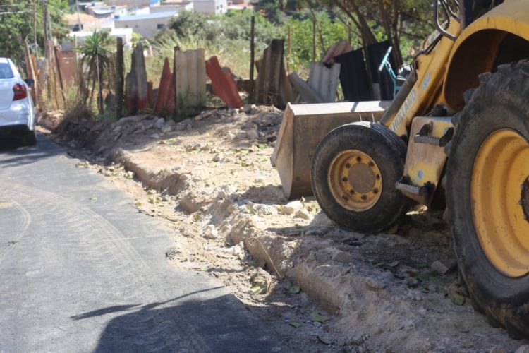 Equipes da Secretaria municipal de Obras da Prefeitura de Santa Luzia estão construindo a drenagem superficial, composta por guias e sarjetas, da rua Pontal, no bairro Nova Conquista. A via acaba de receber cobertura asfáltica e a obra de drenagem, realizada manualmente, irá encerrar os trabalhos de pavimentação no local. A rua tem 793m de comprimento e as obras estão sendo feitas em toda sua extensão.