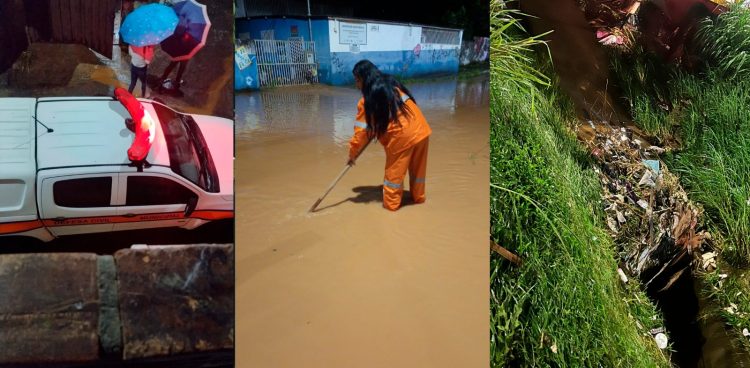 Além do alto volume de chuva, o descarte irregular de lixo contribuiu para o entupimento de bueiros, agravando os alagamentos. Para minimizar os transtornos, os agentes realizaram o desentupimento emergencial com os recursos disponíveis no momento.