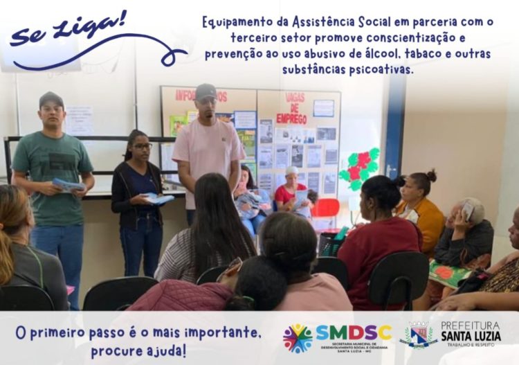 A Prefeitura de Santa Luzia, através da Secretaria de Desenvolvimento Social em parceria com o terceiro setor está promovendo conversas com usuários sobre a conscientização e prevenção ao uso abusivo de álcool, tabaco e outras substâncias psicoativas.