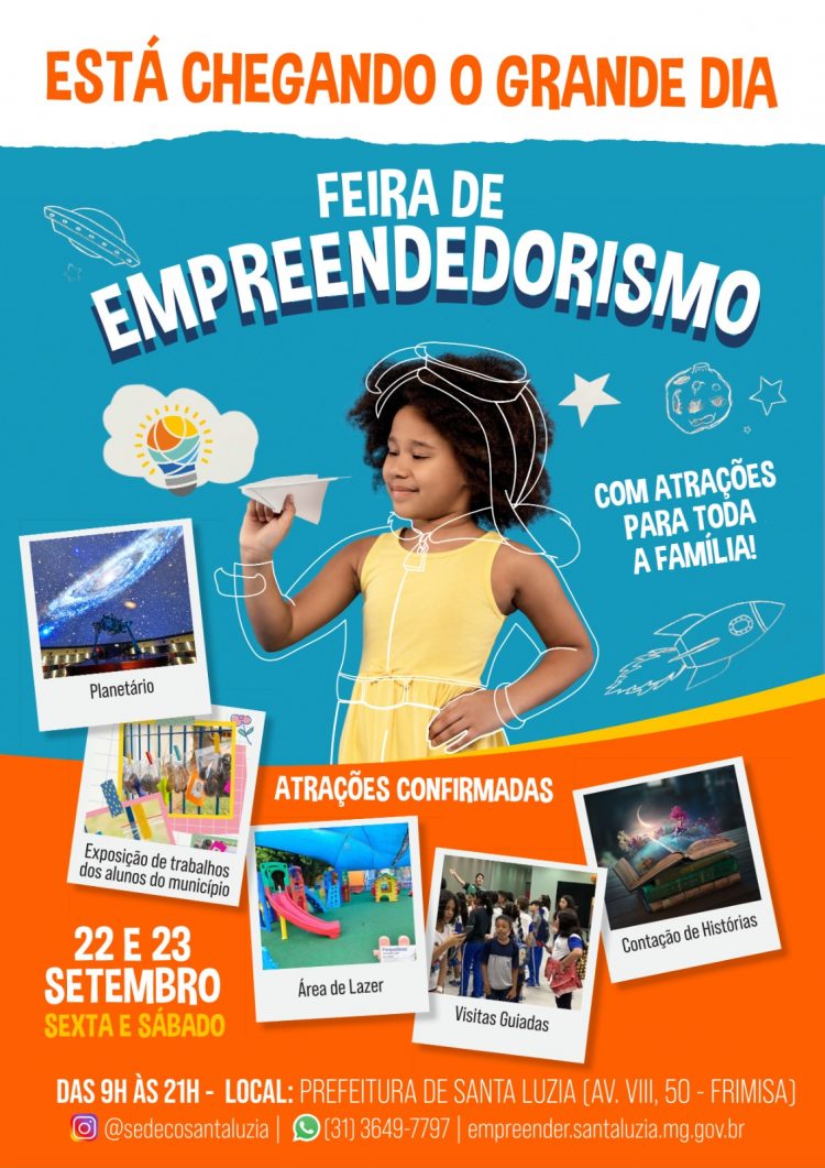 A maior feria de empreendedorismo já realizada em Santa Luzia ocorrerá dos dias 22 e 23 de setembro, sexta-feira e sábado, em dois grandes galpões que já estão montados nas dependências da Prefeitura, no bairro Carreira Comprida.