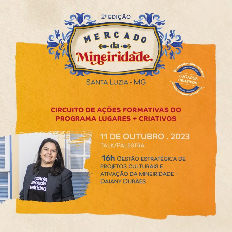 16h – Talk/Palestra: Gestão estratégica de projetos culturais e ativação da mineiridade – Daiany Durães.
