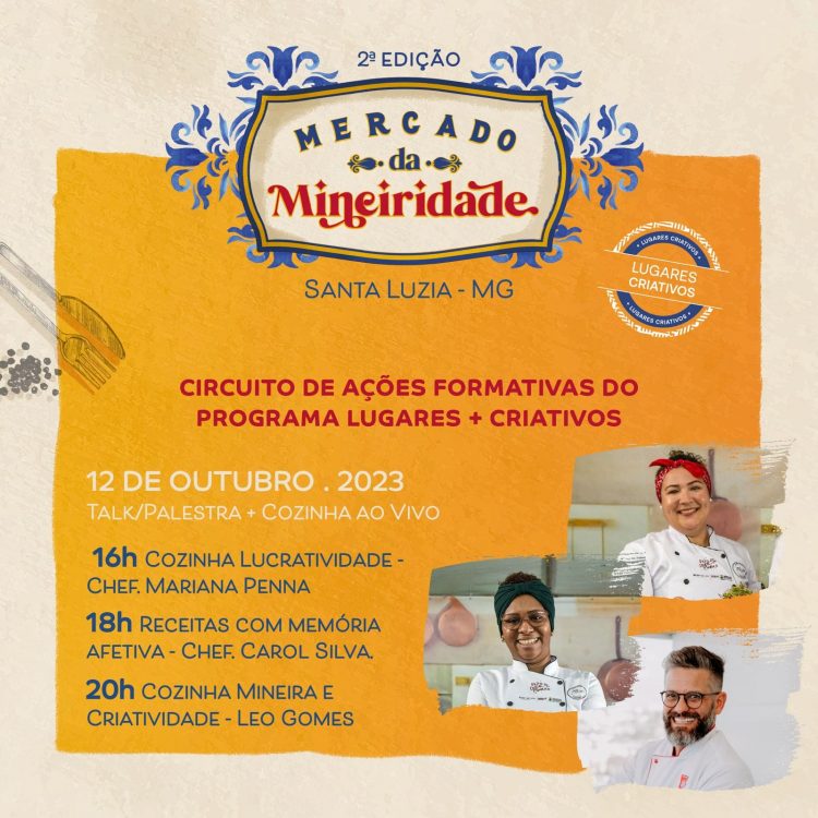 As primeiras atividades do Festival Mercado da Mineiridade em Santa Luzia se iniciam nesta segunda-feira (9) e se estendem até quinta-feira (12). Essa fase inicial do projeto concentra-se em ações de capacitação e formação do Programa Lugares+Criativos, que tem como finalidade impulsionar as práticas criativas locais em direção a novos mercados. O projeto abrange iniciativas de formação voltadas para criadores, produtores e gestores culturais das comunidades, oferecendo encontros, palestras, conversas informais e demonstrações ao vivo.