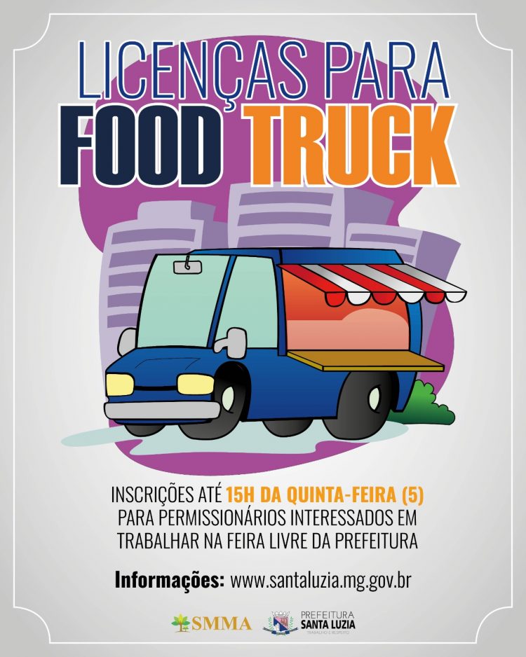 A Prefeitura de Santa Luzia, por meio da Secretaria de Desenvolvimento Urbano, informa que estão abertas as inscrições para permissionários detentores de licenças de Food Truck no município interessados em participar da próxima edição da Feira Livre da Prefeitura. O evento será na próxima sexta-feira (6) e as inscrições podem ser efetuadas até as 15h da quinta-feira (5).