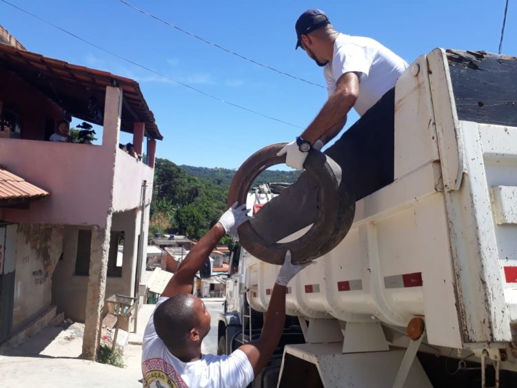 Prefeitura recolhe recipientes que possam acumular água e servirem de criadouros para mosquito Aedes aegypti