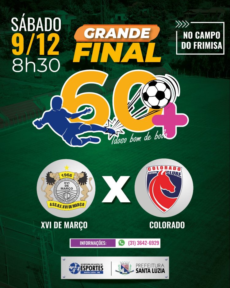 Amanhã, sábado, dia 9 de dezembro, a partir das 8h30, o Estádio Municipal Victor Andrade de Brito (Arena Frimisa), em Santa Luzia, será palco de emoções e habilidades incríveis! Prepare-se para testemunhar a paixão pelo futebol que transcende as idades. No gramado, estarão disputando o título os times: Colorado FC e XVI de Março, ambos luzienses.