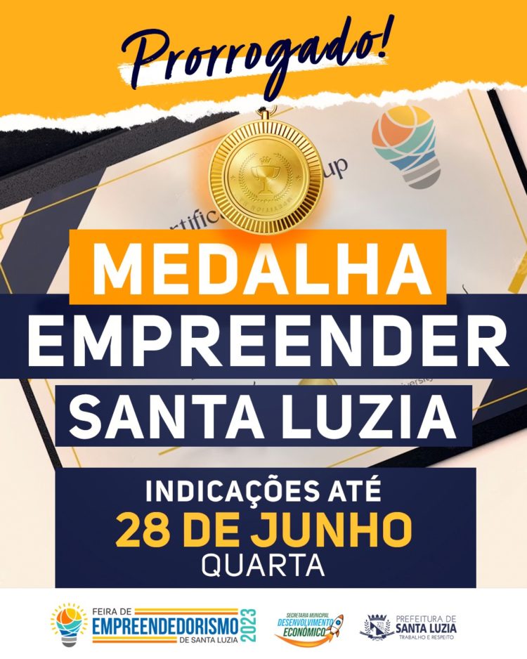 O período de indicações de pessoas para concorrerem ao prêmio Medalha Empreender Santa Luzia, que foi iniciado na segunda-feira, dia 5 de junho e que deveria ter sido encerrado no dia 23, foi prorrogado até a próxima quarta-feira, dia 28. “A razão da prorrogação foi a grande procura constatada. Recebemos solicitações para que o encerramento fosse prorrogado e as estamos atendendo”, esclareceu o secretário municipal de Desenvolvimento Econômico, Leandro Luiz Santos.