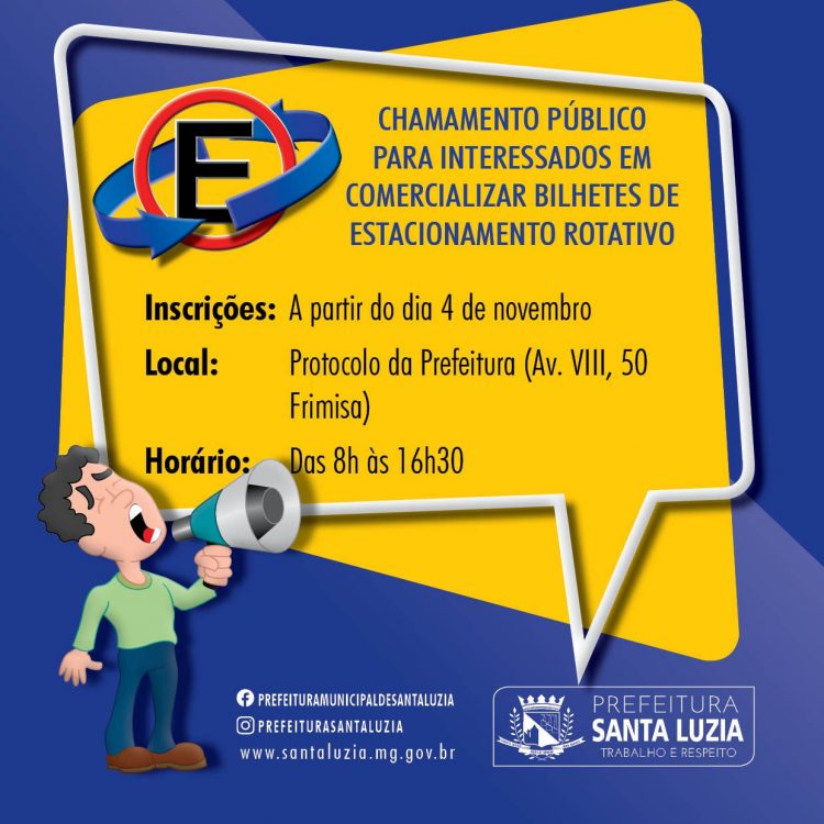 Com essa preocupação, a Prefeitura de Santa Luzia está finalizando os processos para inicio do funcionamento do rotativo na cidade e já publicou edital para o credenciamento de pessoas físicas e jurídicas interessadas em comercializar bilhetes para o rotativo que será de uso obrigatório nas vias públicas do município.
