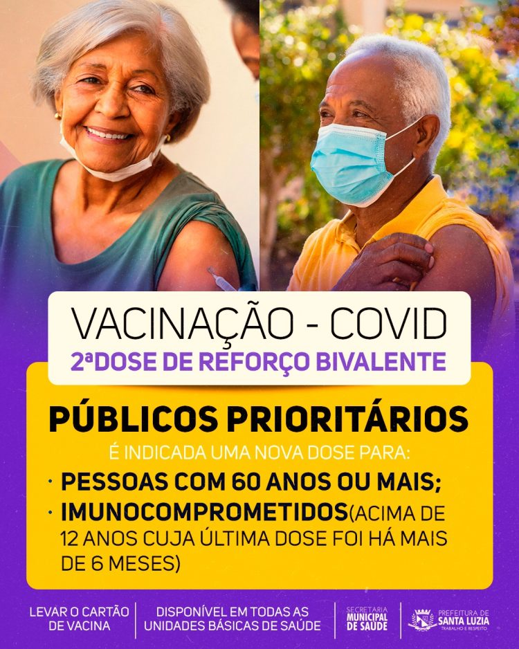 Está disponível, em todas as unidades básicas de saúde (UBSs), a dose de reforço da vacina bivalente para pessoas com idade a partir dos 60 anos e para imunocomprometidos, com idade a partir dos 12 anos. Aos sábados é possível se vacinar nas UBSs São Geraldo e Virgem dos Pobres, que ficam abertas das 8h às 12h, ofertando também vacinas de rotina.