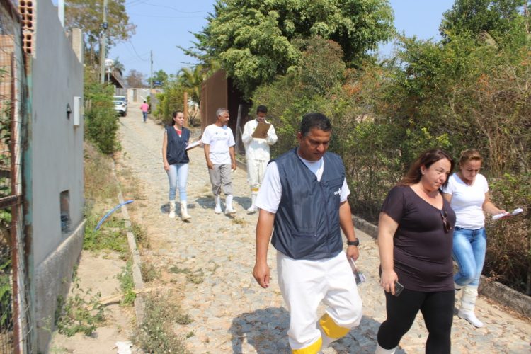 Durante toda a manhã, a veterinária Viviane Moreira e os agentes de combate à endemias visitavam as casas próximas ao local onde foi encontrado o foco transmissor para fazer o trabalho de desinfecção e orientar os moradores sobre as medidas a serem tomadas para evitar a doença.